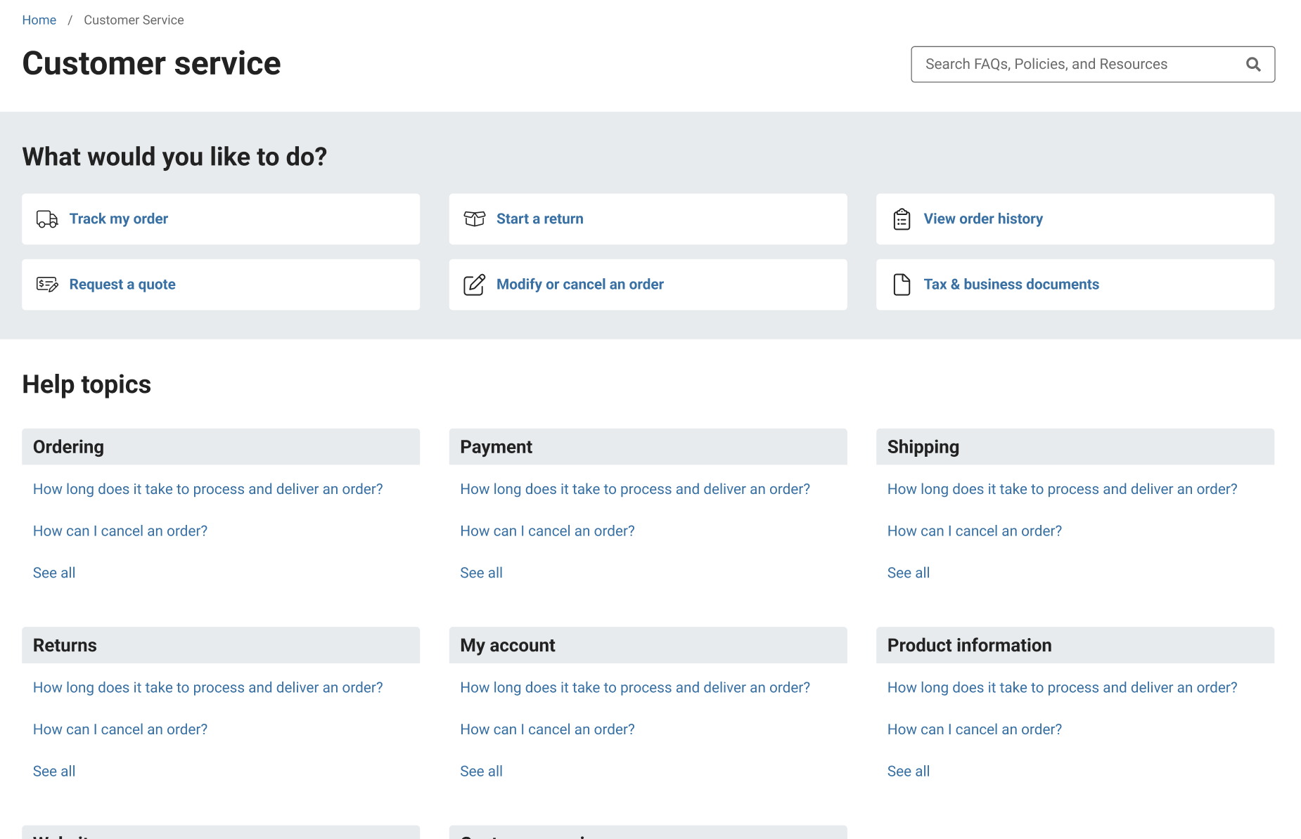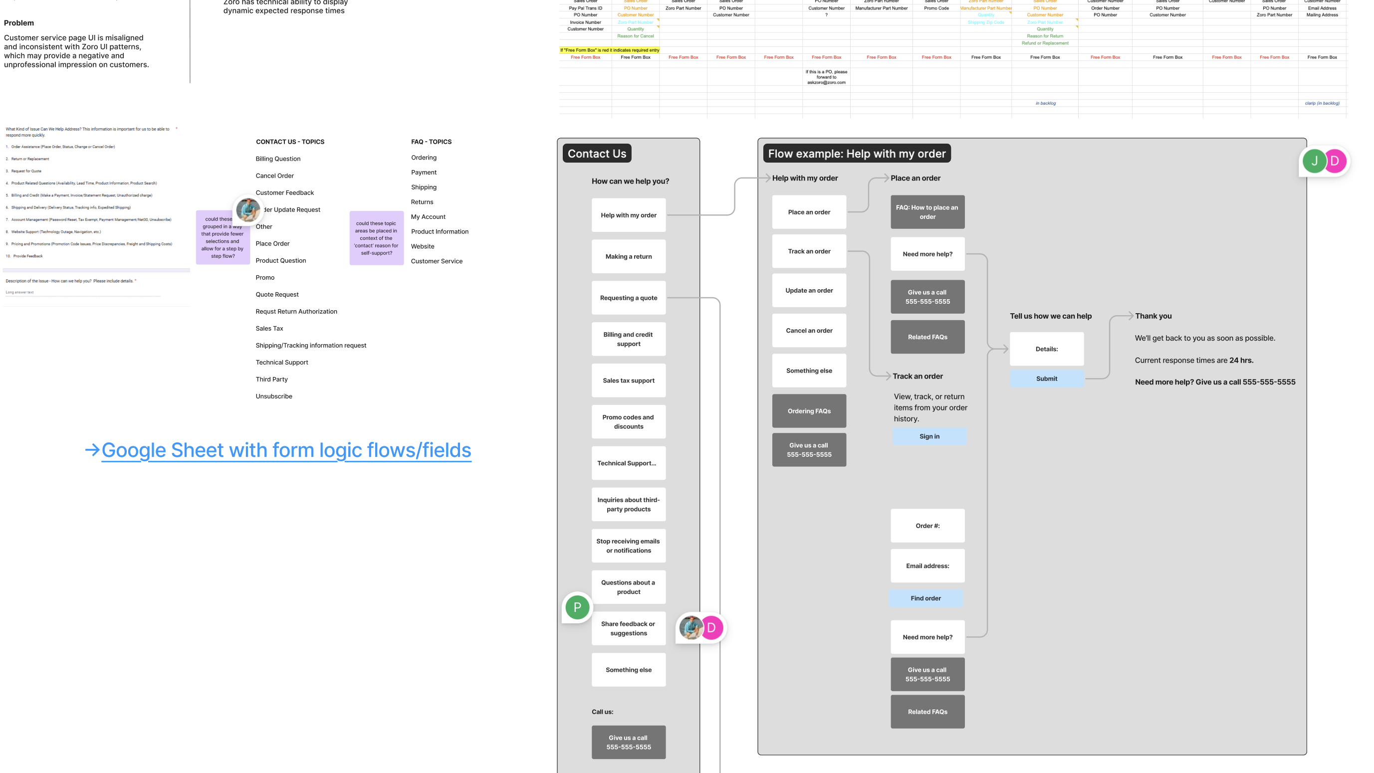 I started by collecting all available behavioral data and reviewed the experience for both customers and agents. I spoke with the customer service team to understand the context of their pain points and the types of information they would need for each request type. Additionally, I worked on a card sort study to understand how we might group the FAQ topics to match users' mental models.