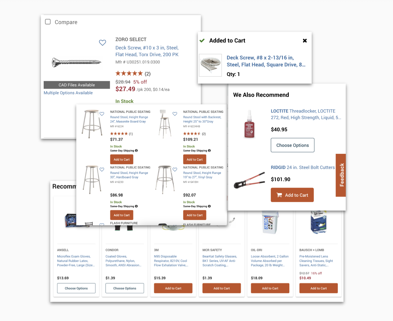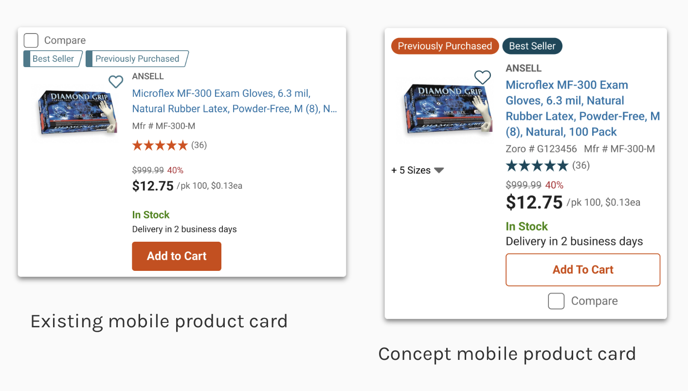 Product cards appeared throughout our customer journey—from search results to recommendations to cart. Poor readability, inconsistent visual design, and lack of brand alignment created friction throughout the journey. Additionally, front-end engineers and designers lacked a clear pattern to follow across product teams, leading to confusion and further inconsistencies. Yet this wasn't flagged as an urgent problem by business or product teams.