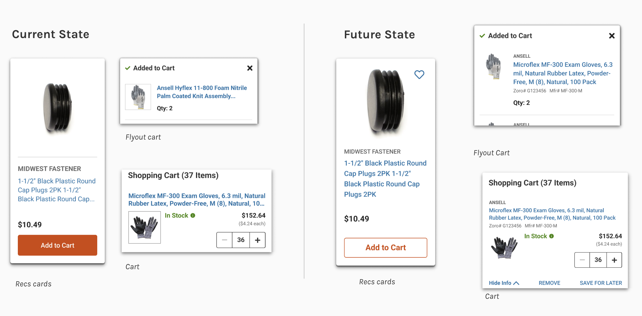 My audit ultimately contained 20+ pages of unique instances of product cards across the customer journey.